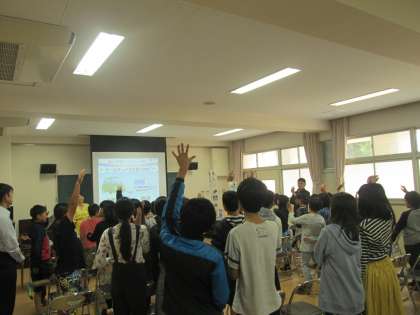 最後に、少しでも二酸化炭素の排出量を減らして、温暖化を抑えるにはどうすればよいか、cool choiceというクイズに全員で挑戦しました。一人一人が少しずつでも行動して、みんなの地球を大切にしたいですね。