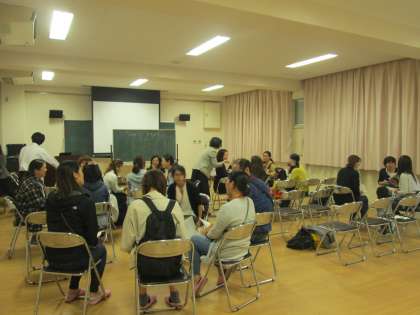 2時40分からは、来年度入学予定の保護者の方々に十三小学校のご紹介をさせていただきました。写真は第二部として、NPO法人ハートフルコミュニケーションの講師さんをお招きし、入学前プログラムと題してお話を伺いました。「親がこどものコーチになるとは」というテーマで、写真のように保護者さん同士が話し合う場面もありました。約30分の間に、みなさんすっかり打ちとけて、話がはずんでおられました。安心して小学校にすすんでいただけたらうれしいです。
