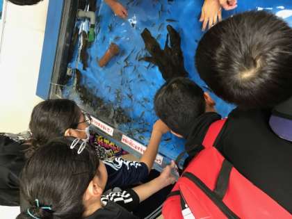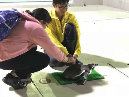 一人ずつペンギンに触れる体験はちょっとドキドキ!こちらの水槽にいるお魚は、ドクターフィッシュです。魚が寄ってきて手の皮膚をつつく、不思議な経験をしました。ちょっとこそばくて、いい気持ちです。