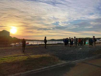6年1組の仲間と過ごす修学旅行2日目の朝です。お部屋の窓の外には絶景が広がっています。