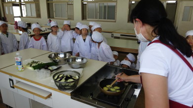 この日は、天ぷらと味噌汁にしていただきました。とれたてのナスはとってもおいしかったようで、子どもたちはあっという間に完食してしまいました。