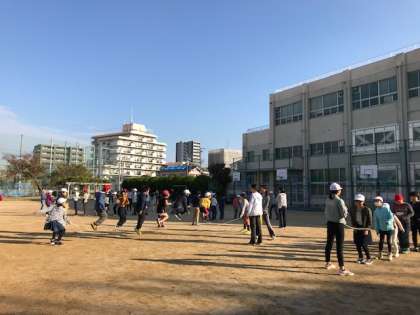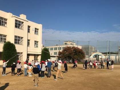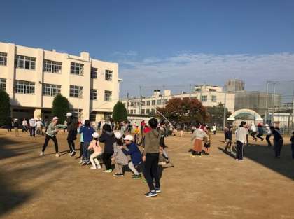 今朝の児童集会は運動委員会のみなさんが、たてわり班対抗大なわとび大会を企画してくれました。最初はなかなか揃ってとべませんでしたが、「低学年を真ん中にしよう」「声を出してなわを回そう」などとうまくとぶために班のメンバーから次々にアイデアが出てきて、連続10回とべる班もありました。