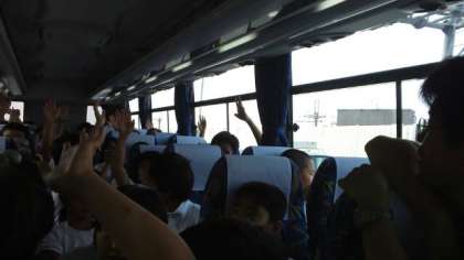 途中、バスレクをしながら楽しみました。少しよってしまった人もいますが、みんな元気です。