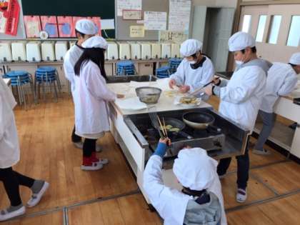 「おいしい〜」「うまっ」の声が家庭科室中に広がりました。