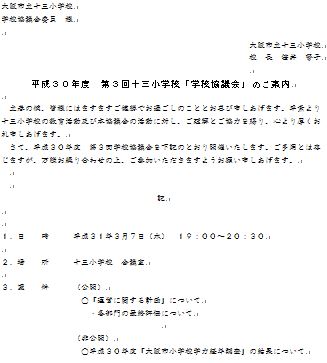 下の文章が読みづらい場合は、こちらのリンクを開いてください。⇒平成30年度第3回学校協議会のお知らせ