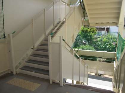 夏休みの間には職員室の非常階段を塗り直す工事が行われました。1階から3階まで非常階段が白いペンキで塗られて、明るくきれいになりました。