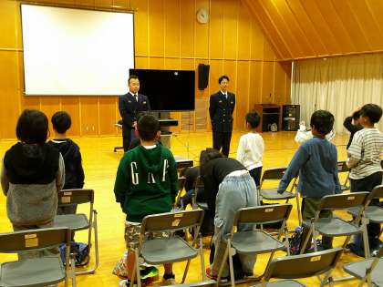 そこで、消防士さんから消防署の仕事内容について説明を聞いたり、DVDを見たりしました。