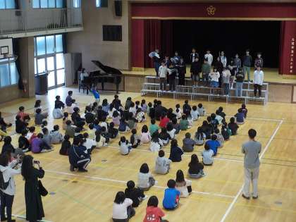 児童朝会 「みんなで歌おう『100周年の歌』」