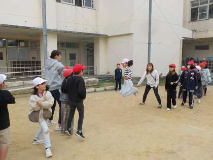 『なわとびチャレンジ』に向けて、体育の授業で大繩跳びを練習する学年もありました。また、休み時間に友達同士でさそいあって練習している子ども達もいました。