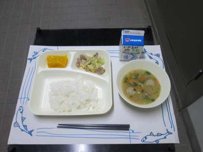 今日は「豚肉と野菜のいためもの、いわしのつみれ汁、かぼちゃういろう、ごはん、牛乳」でした。今日はデザートにかぼちゃういろうが出ました。もちもち食感は人気がありました。4年生の児童が「家でもういろう作ったけどもちもちにならなかった。作り方ホームページに載せて!」という声に作り方を載せました。ぜひ、もう一度チャレンジしてね。