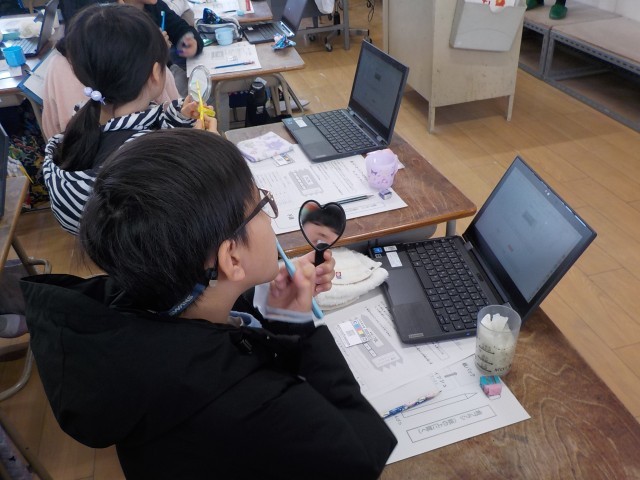 また授業の中では、歯垢をきれいにするための歯ブラシの動かし方も練習しましt。