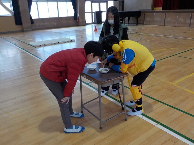 高齢者疑似体験を終えた子ども達からは、「あぁ、腰が伸ばせないから、めっちゃ腰が痛い。」、「周りが何を言ってるのかわかれへんわ。」、「お年寄りってこんなに大変なんやな。」といった感想が出ていました。高齢者の不自由さを体験して、これから身の回りのお年寄りに優しく声をかけたり、サポートしたりすることができたら嬉しいです。