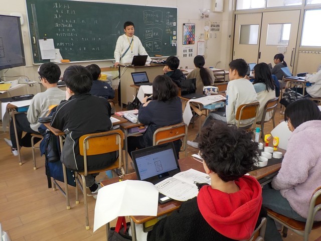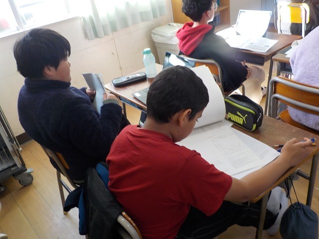 「好きな歌は?」、「好きな言葉は?」、「よく言う口グセは?」、「夢中になっているしゅみは?」。6年生は最後の授業時間に、学習者用端末を使って卒業文集のクラスアンケートをみんなで入力していました。