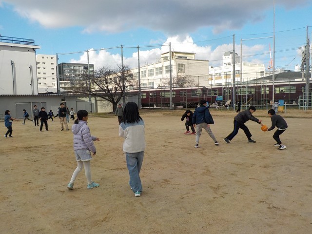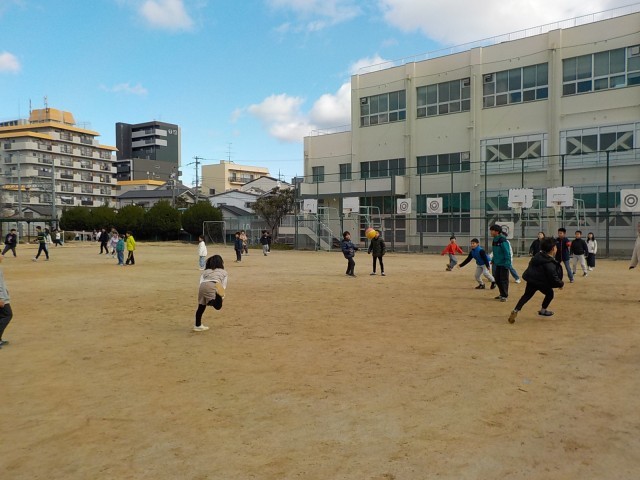 風が吹くと寒く感じる季節になりましたが、子ども達は元気いっぱい。休み時間になると運動場に跳び出して、友達と鬼ごっこをしたり、学年を交えてドッジボールをしたりして楽しそうに遊んでいました。