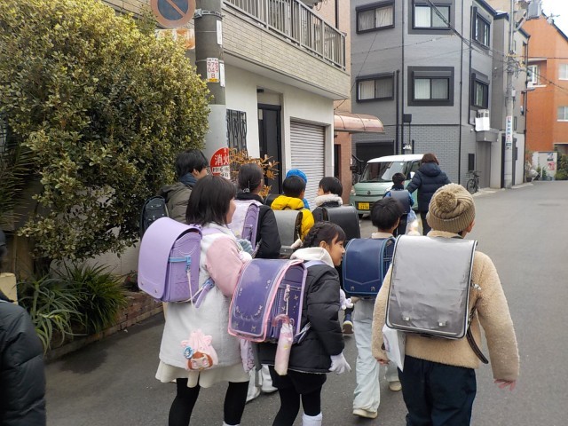 ふだん登下校の時に挨拶をしたり声をかけあったりすることで、ご近所さんのつながりが育まれていくのでしょう。同じ学年の横のつながりだけでなく、異なる学年との縦のつながりで、子ども達の安全が高まっていきます。