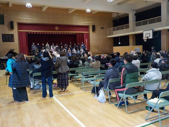 5年生と6年生は学年の最後の参観に向けて、3学期に入ってから毎日のように練習と準備を積み重ねてきました。4時間目には大勢の保護者の方が講堂に入って、いよいよ「♪ウィンター・コンサート」の開演です。