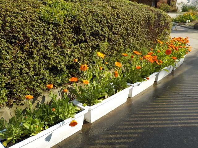(下)玄関に並ぶプランター