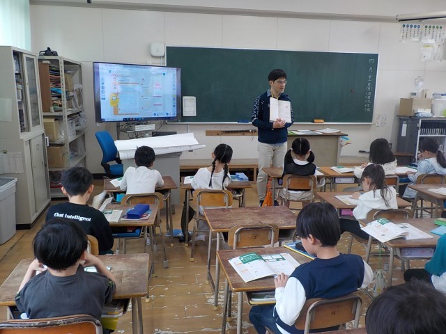 2年生の算数の授業をのぞくと、子ども達の背筋がピンと伸び、心地よい緊張感とワクワクした空気に包まれていました。今日は、新しい算数の教科書を使い始める特別な日です。まずは、これから1年間使う新しい教科書の表紙をそっと丁寧に開き、折り目がつくように指先でしっかりと押さえていました。