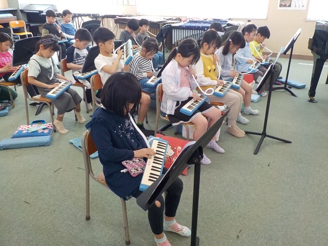 ピンと背筋を伸ばし、正しい姿勢で楽器に向き合う姿は、1年生の時よりもしっかりして見えました。先生のピアノの伴奏に合わせて、一生懸命に指を動かす2年生。音楽室いっぱいに、きらきらとした星空が広がったような、あたたかい演奏でした。