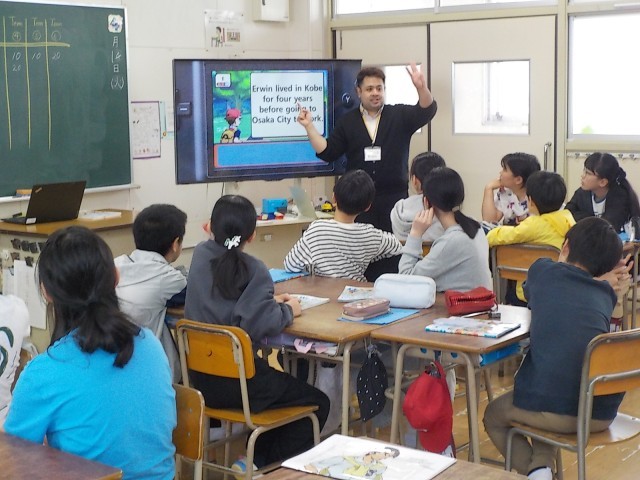 6年生の英語の授業では、Erwin先生を囲んでグループ対抗の「Erwin先生クイズ」が開催されました。子ども達はグループに分かれ、チームワークを武器に難問に挑みます。