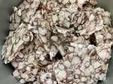 今日の給食「チキンレバーカツ、ケチャップ煮、たことキャベツのバジルソテー、黒糖パ...
