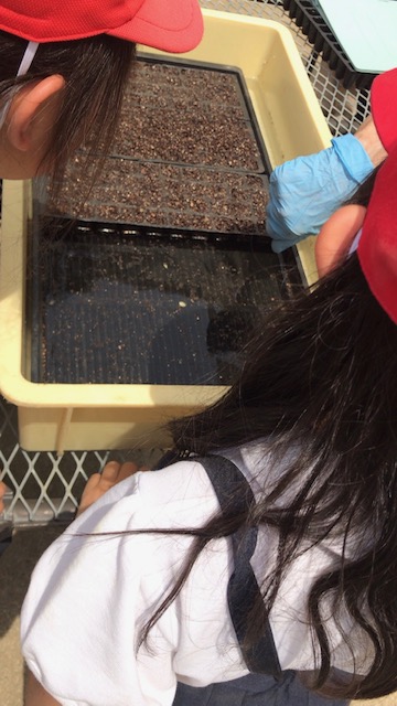 来てくださった皆様と一緒に、2年生の子ども達が生活科の学習のして、マリーゴールドの種まきを行いました。懇切丁寧に作業の進め方を教えてもらいながら楽しんで学習することができました。また、「底面給水」という水の与え方を教えてもらい、子ども達の学びに繋がるとても良い時間を過ごすことができました。