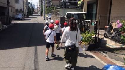班に分かれて、校区の色々な場所を探検し、インタビューポイントでは、しっかりと挨拶をし、自分たちで考えた質問をさせていただきました。