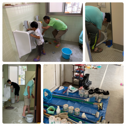 日本企画さんが、社員研修の一環として、木川小学校のトイレをそうじしてくださいました。