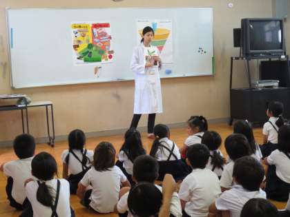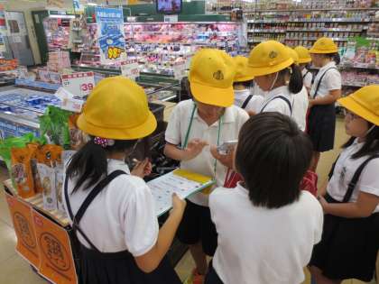 学校で、食育インストラクターの方からお話を聞いた後、1組は午前中、2組は午後にスーパーライフに見学に出かけました。