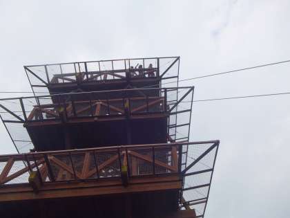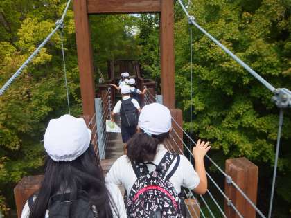 公園では、ソラードという森の空中観察路を通り、森の様子を観察しました。標高82メートルの展望タワーからの眺めは最高でした。
