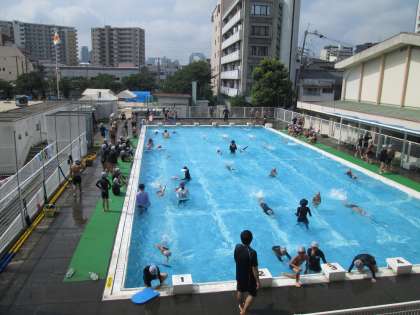 昨日が雨天のため中止となったので、今日7月23日が事実上、夏休みプール開放、水泳教室の初日となりました。高学年プール開放96名、低学年112名、水泳教室70名とたくさんの児童が晴天の下、プール水泳を楽しんでいました。