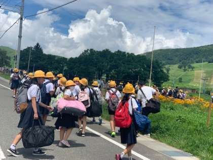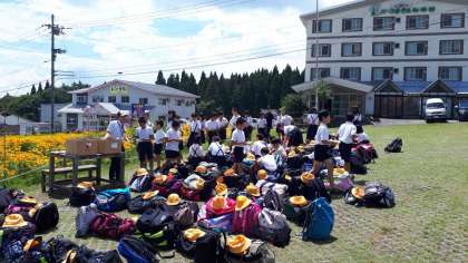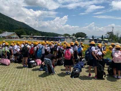 予定より少し早く到着しました。バス酔いの子もいましたが、元気に着きました。現地はいい天気です。