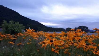 夜中降っていた雨はやみましたが、風が強く、少しくもり空です。が空には少し晴れ間もあります。