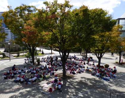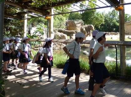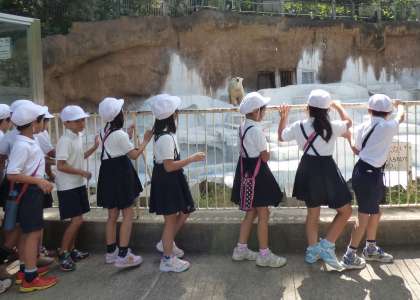 1年生と2年生合同で、天王寺動物園へ遠足に出かけました。秋を感じるとても気持ちのよい天気の中、いろいろな動物たちを見てまわりました。お昼ご飯は、公園の大きな木の木陰で、お弁当をみんなで仲よく食べました。