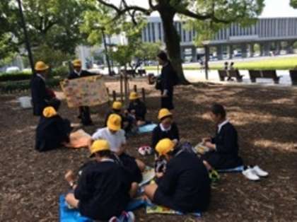 平和記念公園でセレモニーを終え、お昼ごはんを食べました。