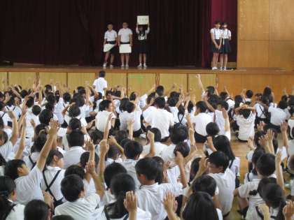 9月5日(木)の朝、児童集会がありました。集会委員による3択の「動物クイズ」で1年生から6年生までが楽しみました。