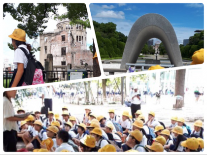 本川小学校内の資料館でいろいろな資料を見学する様子は、真剣そのものです。