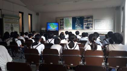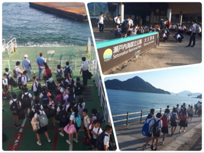 竹原、忠海港からフェリーに乗りました。瀬戸内海の素晴らしい景色にみんな大興奮!