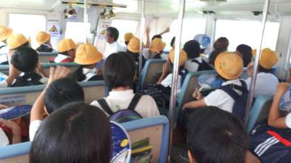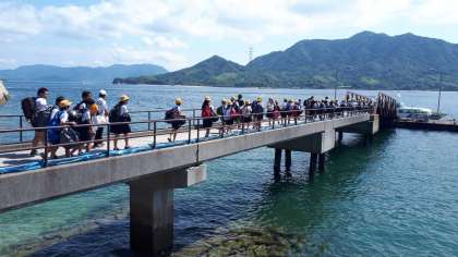 お昼のカツカレーを食べ、閉舎式を終え、大久野島を後にしました。