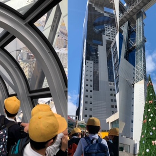天候にも恵まれ「梅田スカイビル」では、空中庭園から大阪の街を一望することができました。子どもたちは、淀川の大きさに驚いたり、淀川の向こうに木川小学校の校区を見つけ声をあげていました。