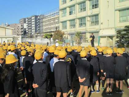 12月16日(月)児童朝会がありました。校長先生からは昨日の日曜日に盛大に行われた「もちつき大会」についての話がありました。もちつき大会の様子や地域の方々に感謝することをお話されました。また、絵画(水辺の風景)で表彰された3人の紹介がありました。看護当番の先生からはポケットには手を入れて歩かないことと、暗くなるのが早いので帰宅時間に気を付けるようにという話がありました。