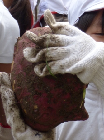 学習園に植えたさつまいもの苗が大きくなり、収穫の時期を迎えました。 大きく育ち、みんな大喜びです。