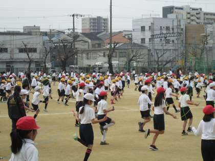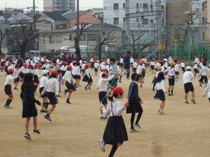 1月16日(木)〜29日(水)は「短なわ週間」でした。2時限目と3時限目の間の15分休憩に全校児童が運動場で音楽に合わせてなわとびを行いました。一週間ですごく上達したように思えます。明日からは希望者が「運動委員会にチャレンジ」でなわとびの様々の跳び方で回数を競います。