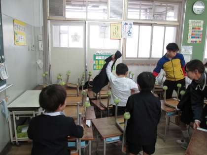 1月29日(水)防犯の避難訓練がありました。今回は不審者が侵入したときの教室での対処の仕方を学び、安全が確保されたという想定で、全校児童が講堂に集合、地域子ども会での集団下校という予定でしたが、インフルエンザの感染拡大を予防するために、講堂に集合することはせず、教室からの下校となりました。