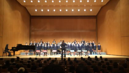 今日、5年生がクレオ大阪で行われた大阪市小学校音楽交流会に出場しました。ホールいっぱいのたくさんの観客を前に、緊張しきりでしたが、練習の成果を発揮し、しっかりと「午前の部」のトリをつとめることができました。