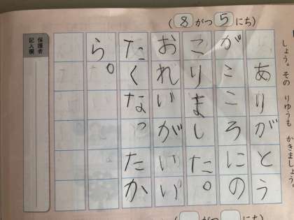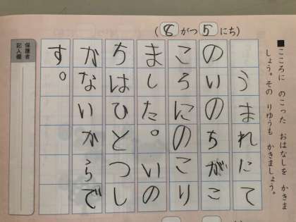道徳ノートを持ち帰りましたら、保護者記入欄にお子さんへのメッセージを記入してください。よろしくお願いします。