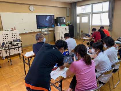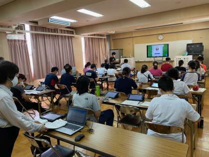 二学期に向けて、「若手研修会」と「ICT研修会」を行いました。教室でできる簡単なゲームの紹介や、学校と家庭における双方向通信の活用研修、タブレットを活用した学習ドリルなどの紹介がありました。二学期より、活用していきます。