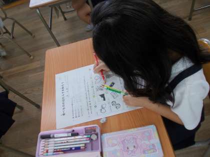 2年生を対象に、栄養教育推進事業による栄養指導がありました。今日の給食の献立に使われている食材などを赤・黄・緑のグループに分け、それぞれの働きについて学びました。