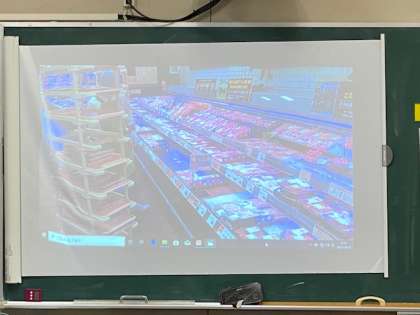栄養の学習の後には、スーパーマーケットの様々な工夫や仕事について、映像資料を見ながら学習しました。お肉を切るスライサーや、魚を捌く映像の他にも、冷蔵庫や冷凍庫の中など、普段見ることのできないスーパーマーケットの裏側を知ることができ、子どもたちも驚いていました。