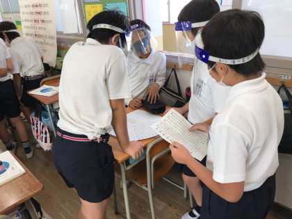 「万葉かな」を使って作文をしました。その後、交流して読み合いをしました。現在使われている「漢字かな交じり文」のよさを実感することができました。